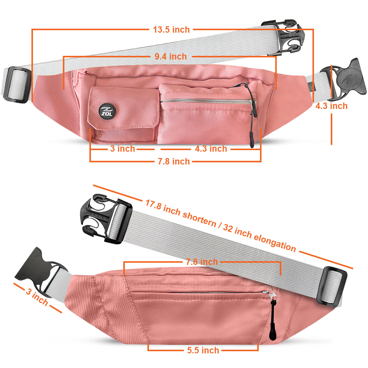 - There are 5 pockets on our adventure waist bag, including 3 front pockets, 1 main pocket and a hidden back anti-theft pocket to store your passport or cash.