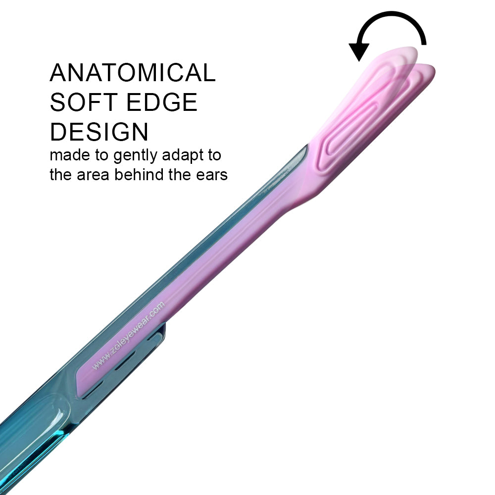 - Soft edge temple tips that adapt gently behind the ears